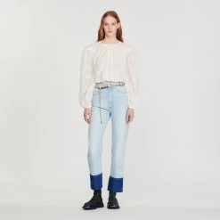 Wholesale ❤️ Sandro Cropped Top With Full Sleeves Ecru ????
