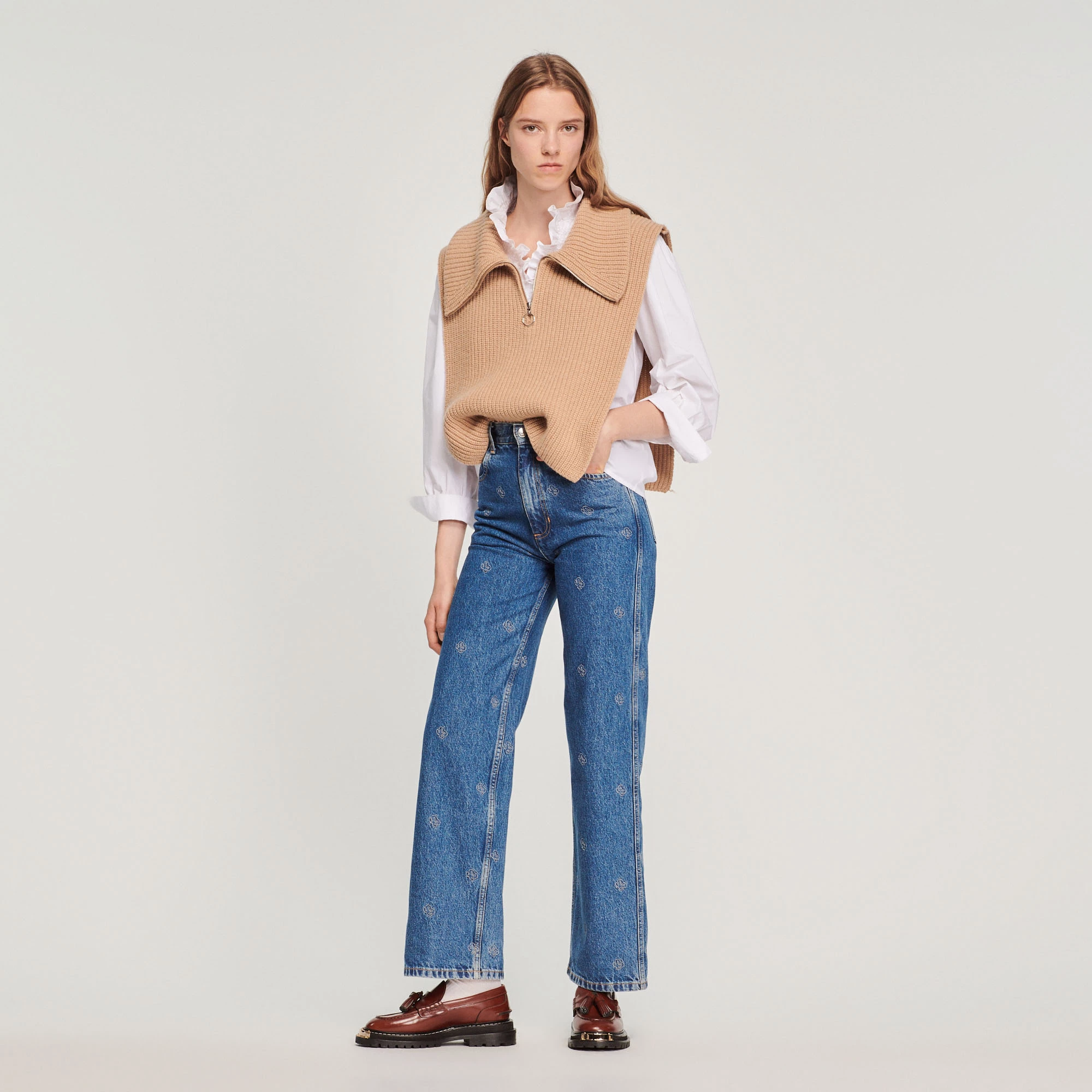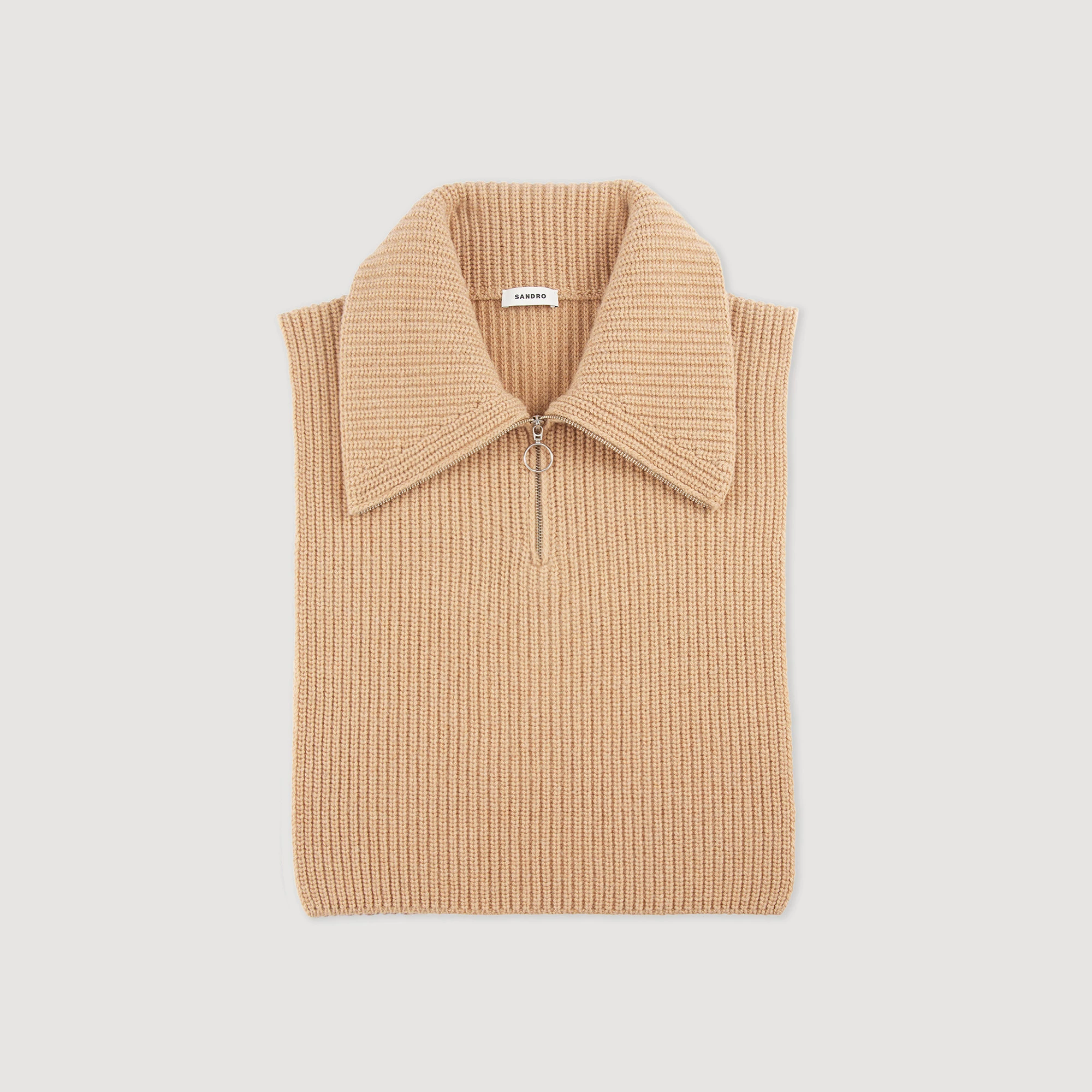 Knitted neck warmer with a zip fastening.