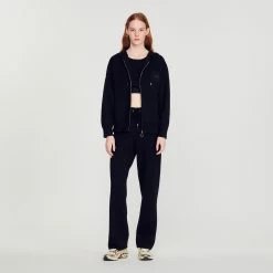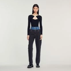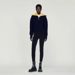 Sandro is committed to ever more responsible fashion. As part of our traceability project in partnership with Fairly Made, we openly reveal information on the origin, manufacture and environmental impact of our clothing. All the stages for making and transforming this sweater have been carried out in China, mainly using traceable and responsible wool from South African farms.